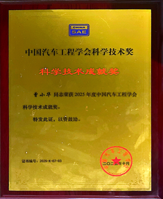 2025年10月22日,第三十二届中国汽车工程学会年会在重庆召开,同期举行了2025年度中国汽车工程学会科学技术奖和人才奖颁奖仪式。黄色网站-偷拍黄色网站-免费黄色网站 曾小华教授获得“2025年度中国汽车工程学会科学技术成就奖”。