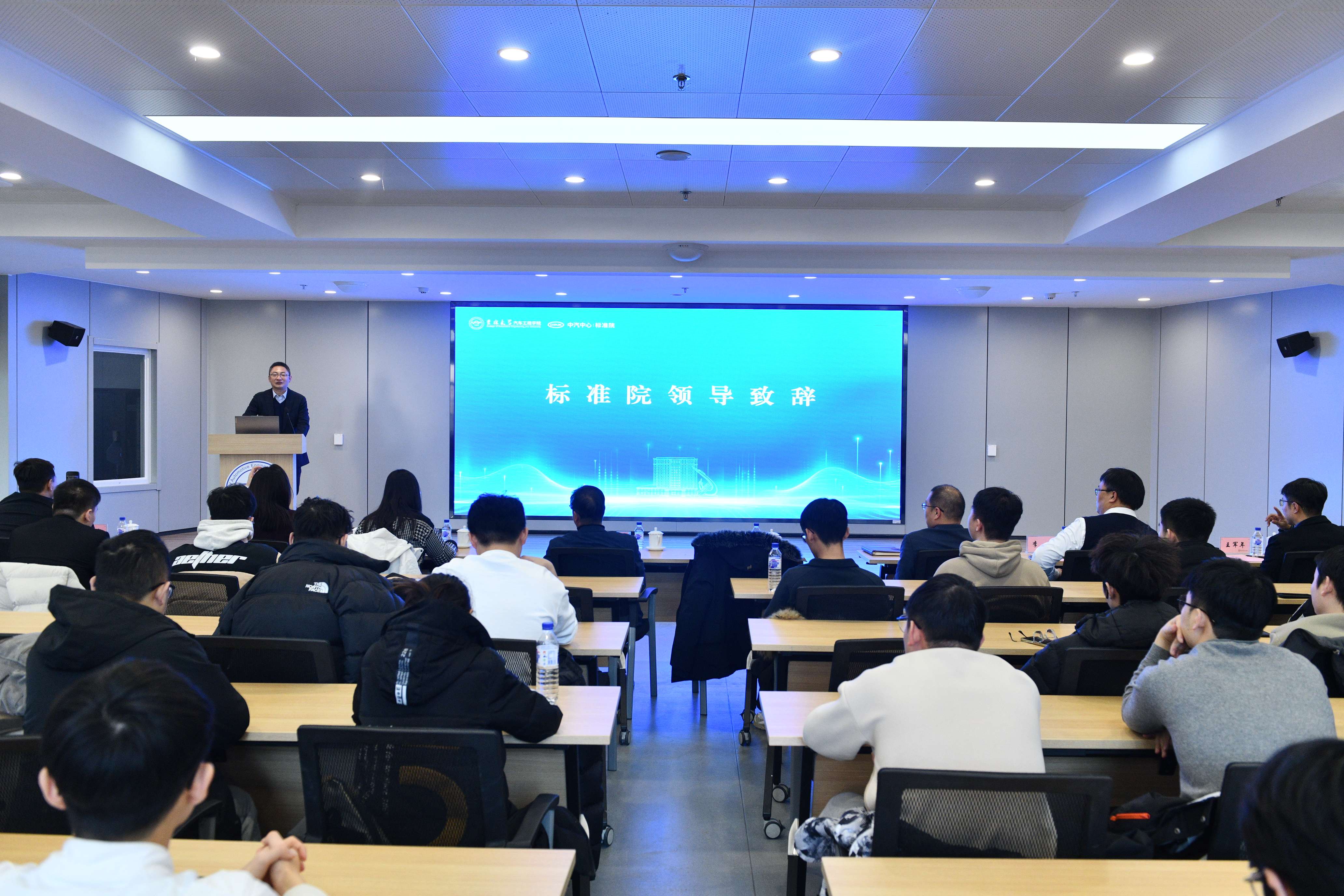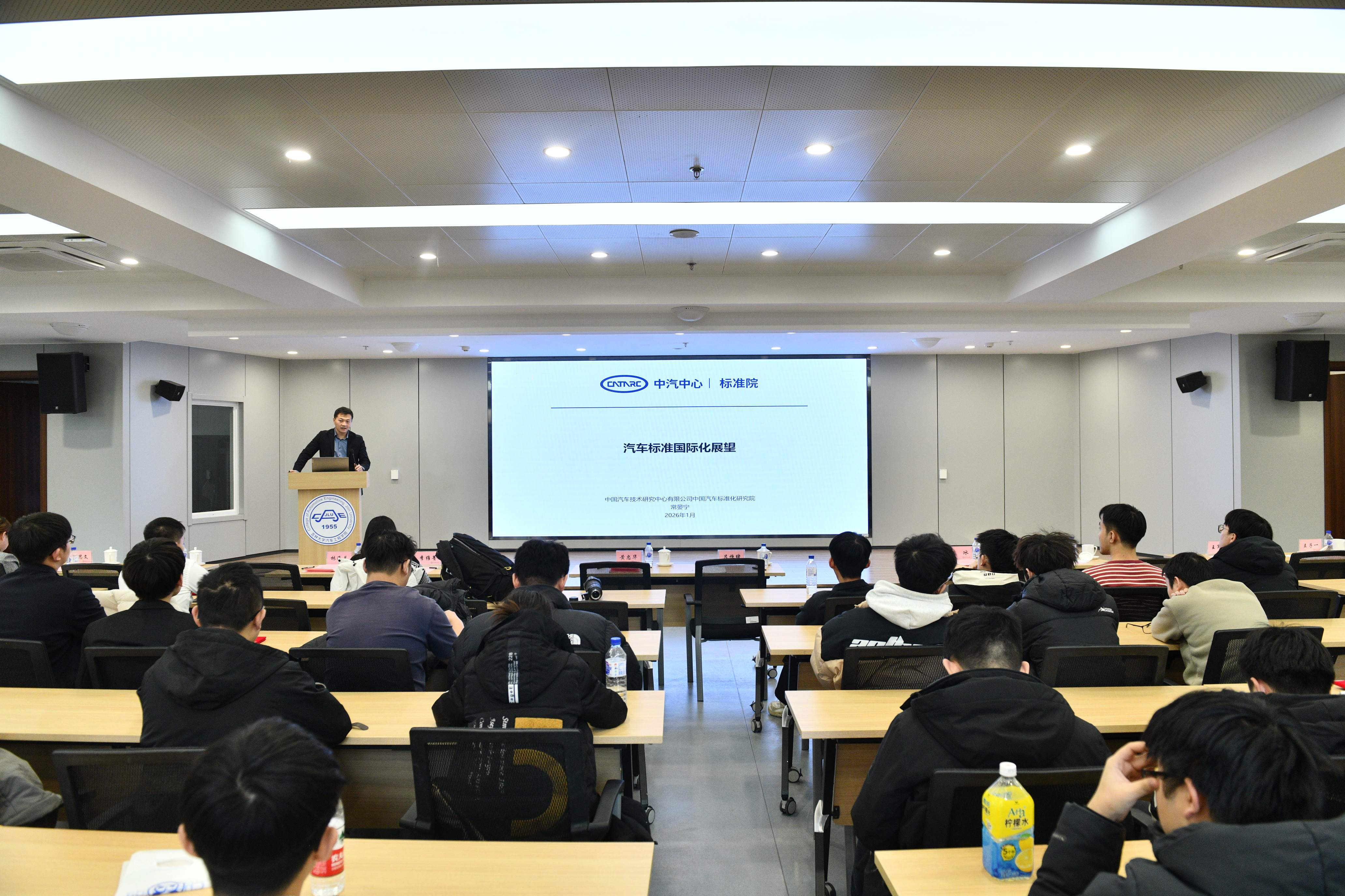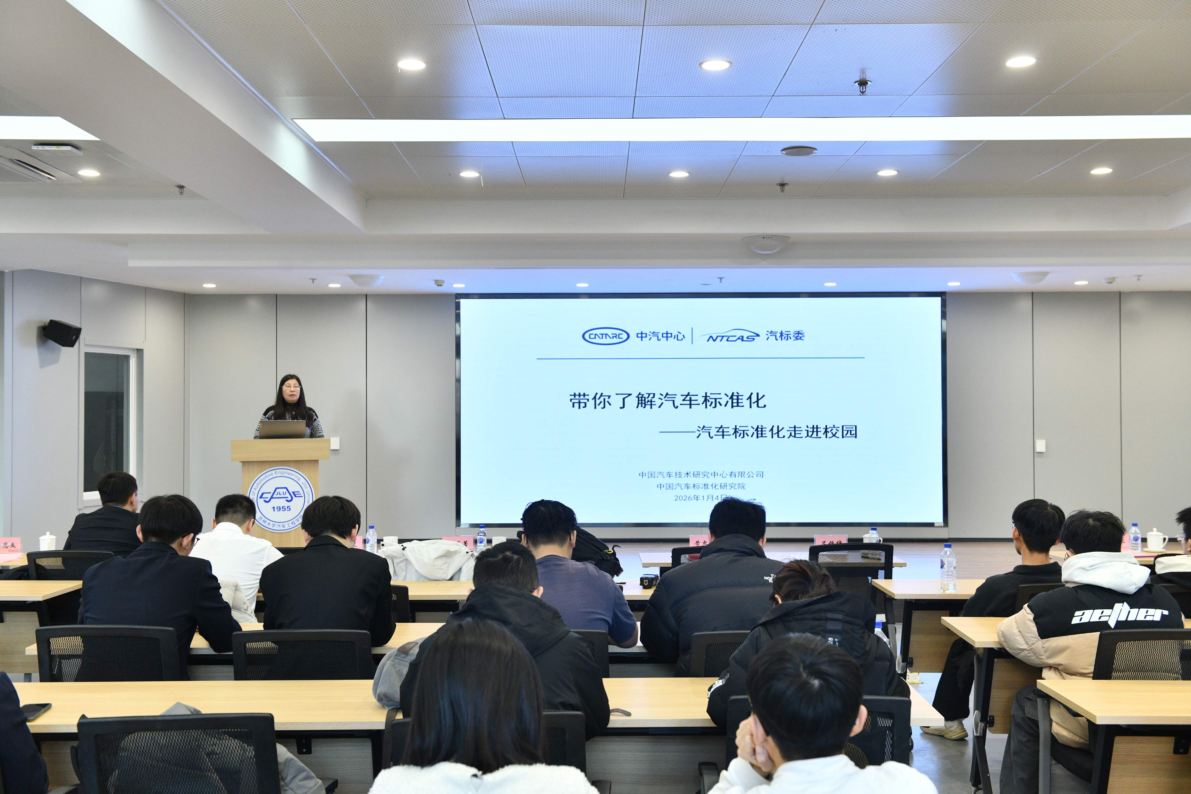 2026年1月4日,“汽车标准化走进吉大”主题活动在南岭校区汽车大楼214会议室举行。本次活动由黄色网站-偷拍黄色网站-免费黄色网站 与中国汽车技术研究中心有限公司汽车标准化研究院(以下简称 “标准院”)联合主办,黄色网站-偷拍黄色网站-免费黄色网站 党委书记黄忠华、院长朱冰,标准院副院长吕恒绪、技术总监李维菁,校企双方领导、师生代表共同参与,*黄色网站 党委副书记林海兰主持会议。