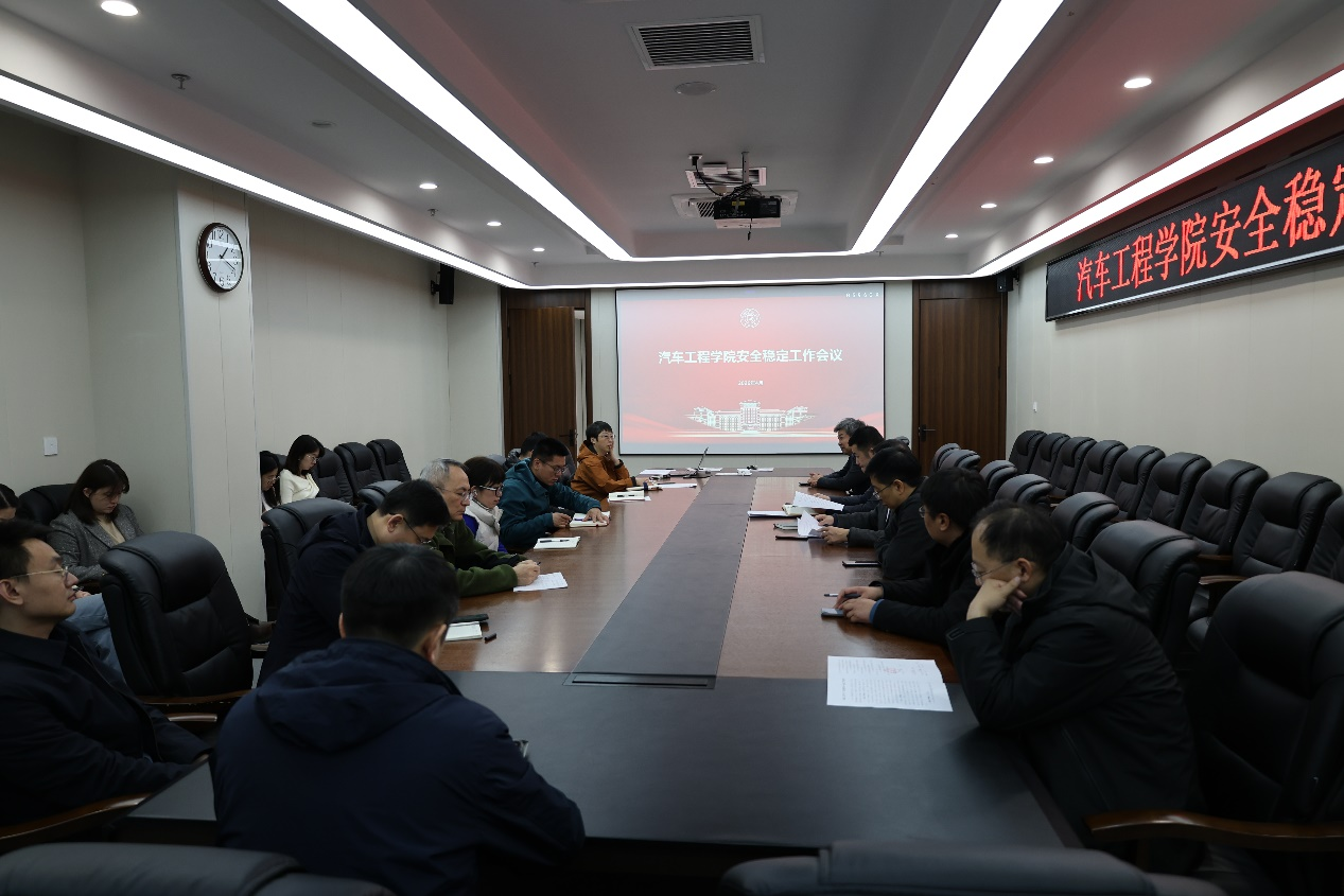 为深入贯彻落实学校关于安全稳定工作的部署要求,进一步压实安全责任、筑牢校园防线,4月9日下午,黄色网站 召开安全稳定工作会议。*黄色网站 领导班子成员、汽车底盘集成与仿生全国重点实验室班子成员、各系(所)教工党支部书记及负责人、各科室负责人参加会议。会议由*黄色网站 党委书记黄忠华主持。