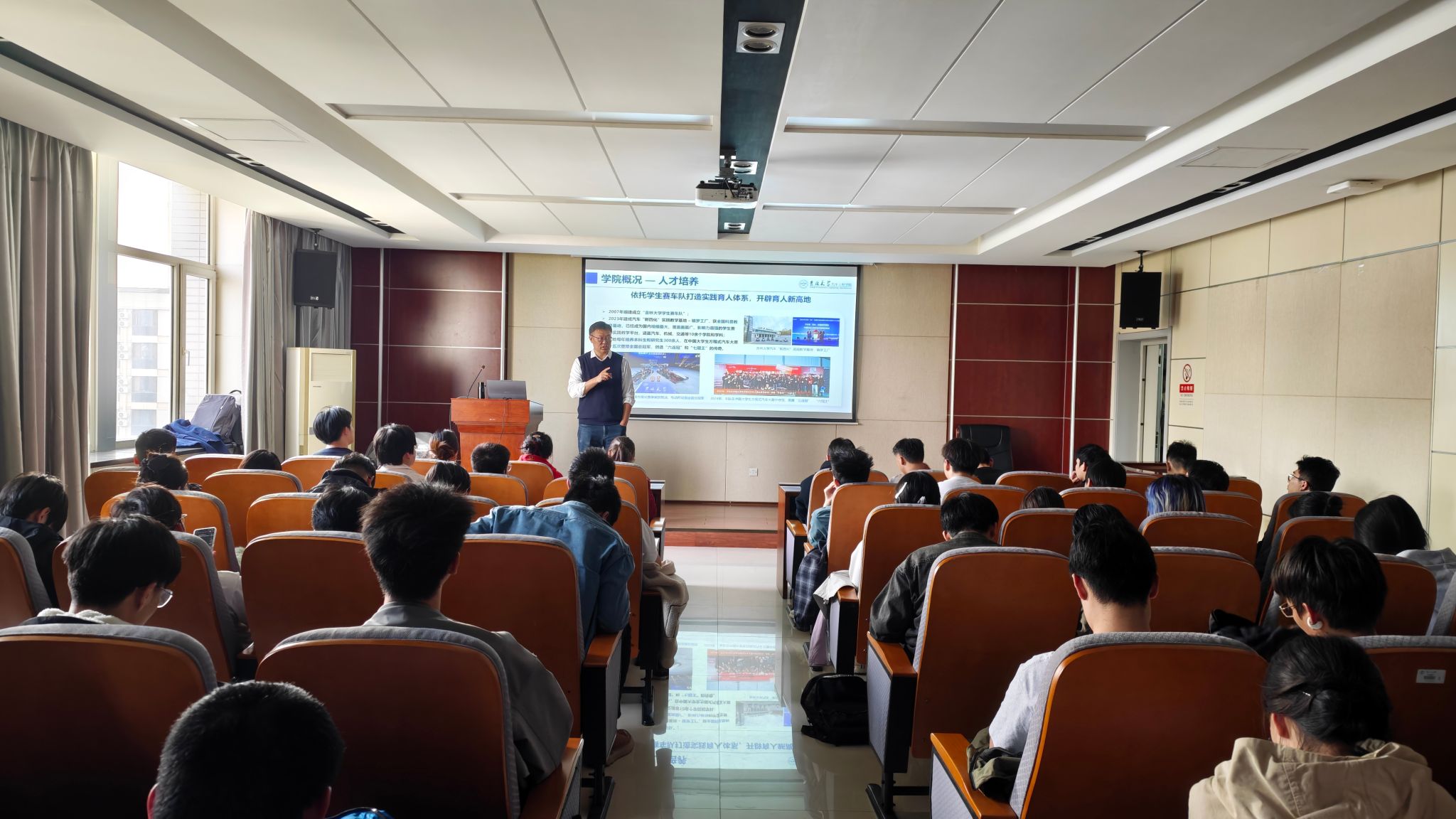 报告结束后,李明教授围绕黄色网站-偷拍黄色网站-免费黄色网站 的研究生培养特色开展招生宣讲。他介绍了*黄色网站 从学士到博士后的完整人才培养体系,重点解读了2026年车辆工程、动力工程及工程热物理等学科的招生计划、导师团队及科研方向,展示了*黄色网站 在智能网联汽车、新能源汽车、集成式热管理系统等领域的科研平台与成果。